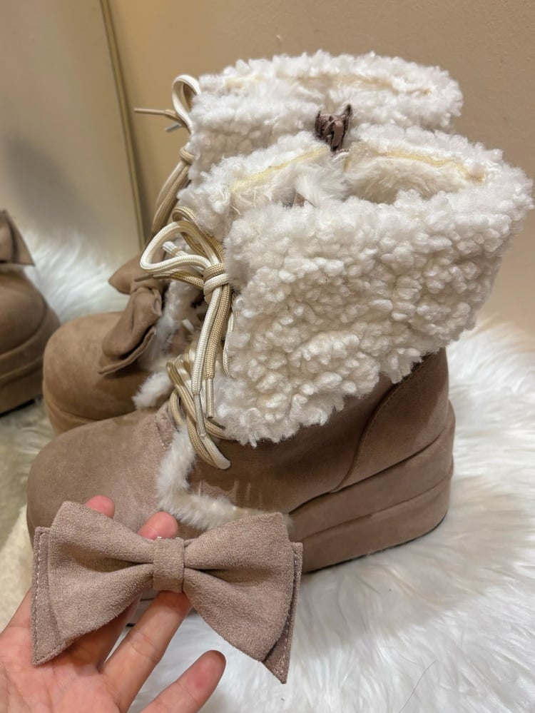Khaki Bow Accent Fleece Lined Platform Winter Boots