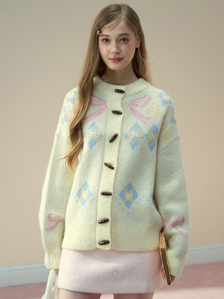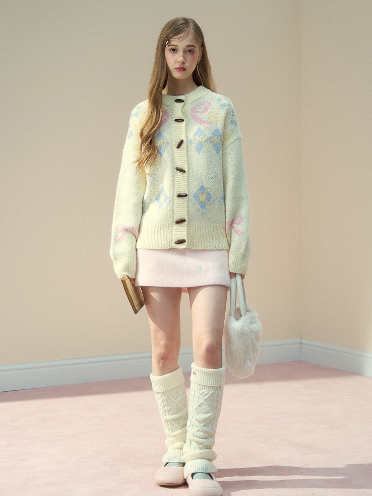 Knit Bow Vintage Pattern with Sweater Butterfly Beige