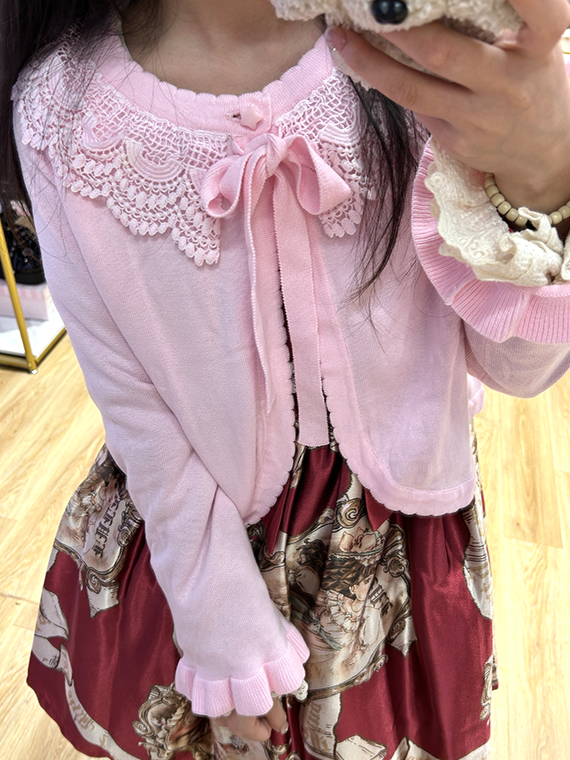 Knit Cardigan Pink Lace-Trimmed