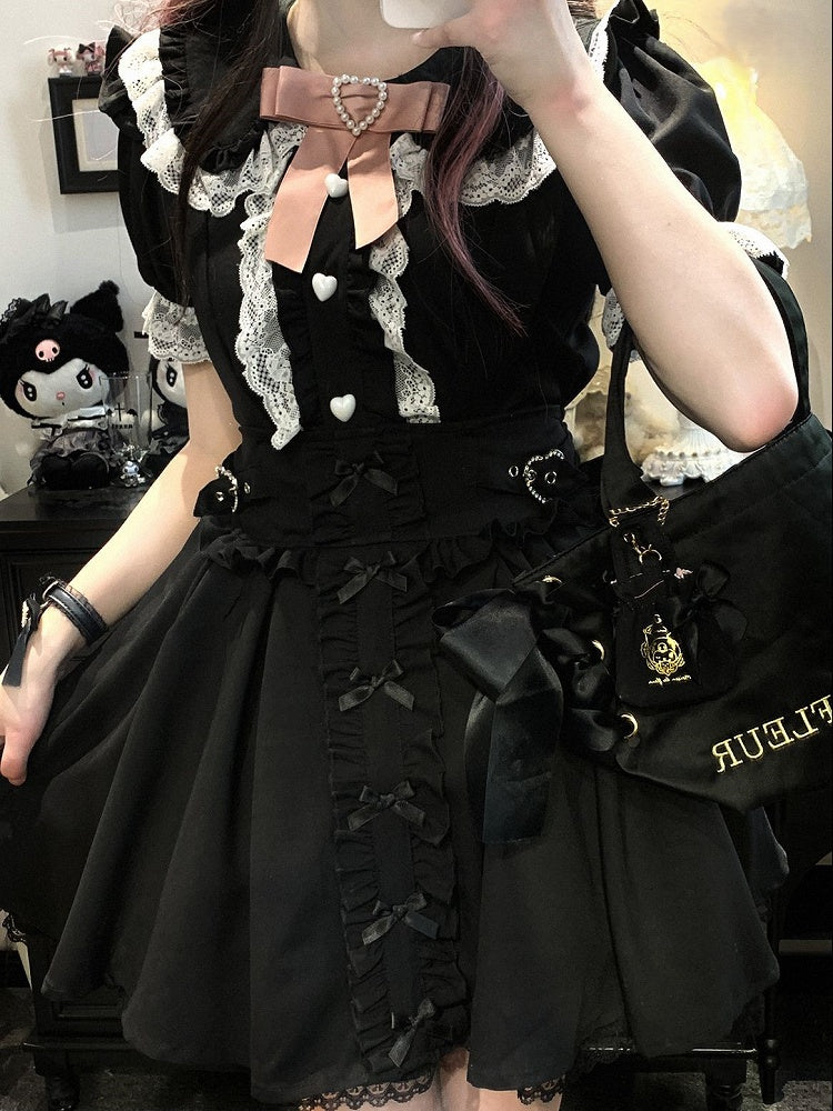 Lace Blue/White/Pink/Black Kei Trim Jirai Details Shorts Dress With Overall Bowknot