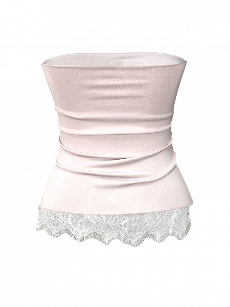 Lace Floral Embroidered Bustier Top Pink Underlay Cutouts with