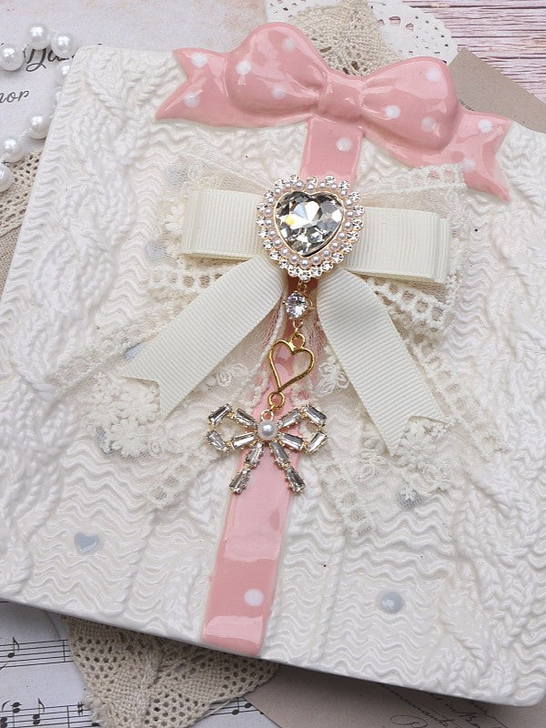 Jirai Kei 4 Color Options Bowknot Charm Heart Rhinestone Lace Hairclip