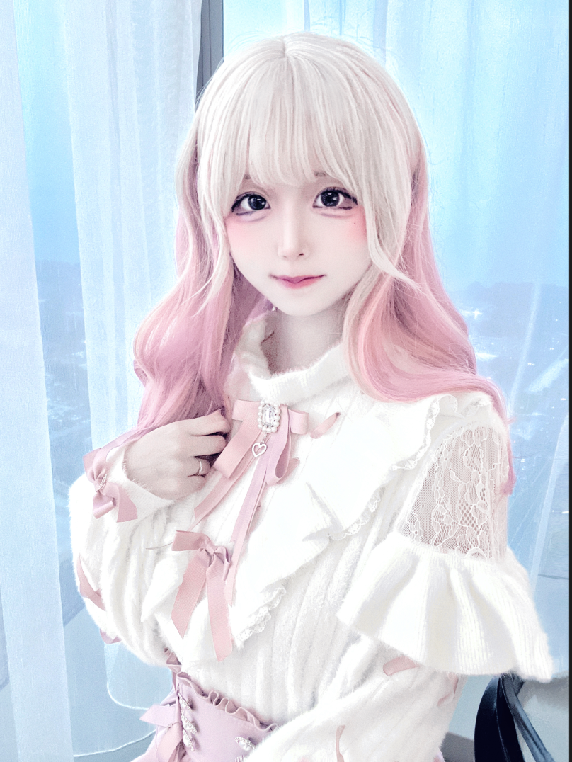 Bangs with Purple 70CM Dusty Curtain Wig Wavy