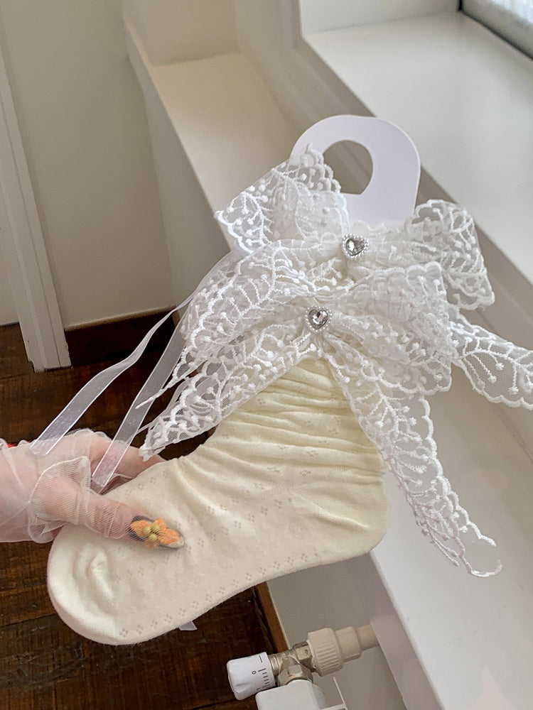 White/Pink/Yellow/Blue Lace Bowknot With Rhinestone Charm Socks