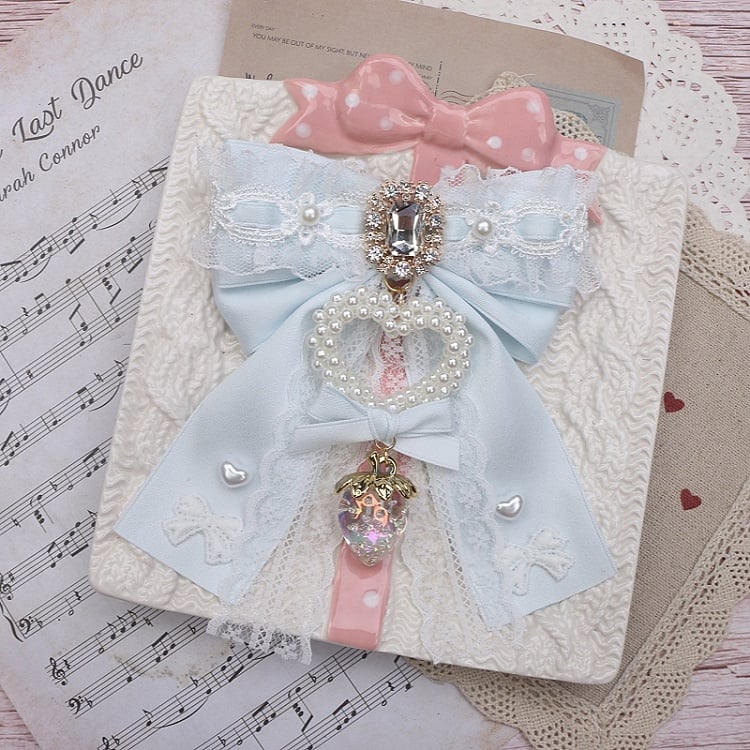 Jirai Kei 4 Color Options Large Bowknot Heart & Strawberry Charm Hairclip
