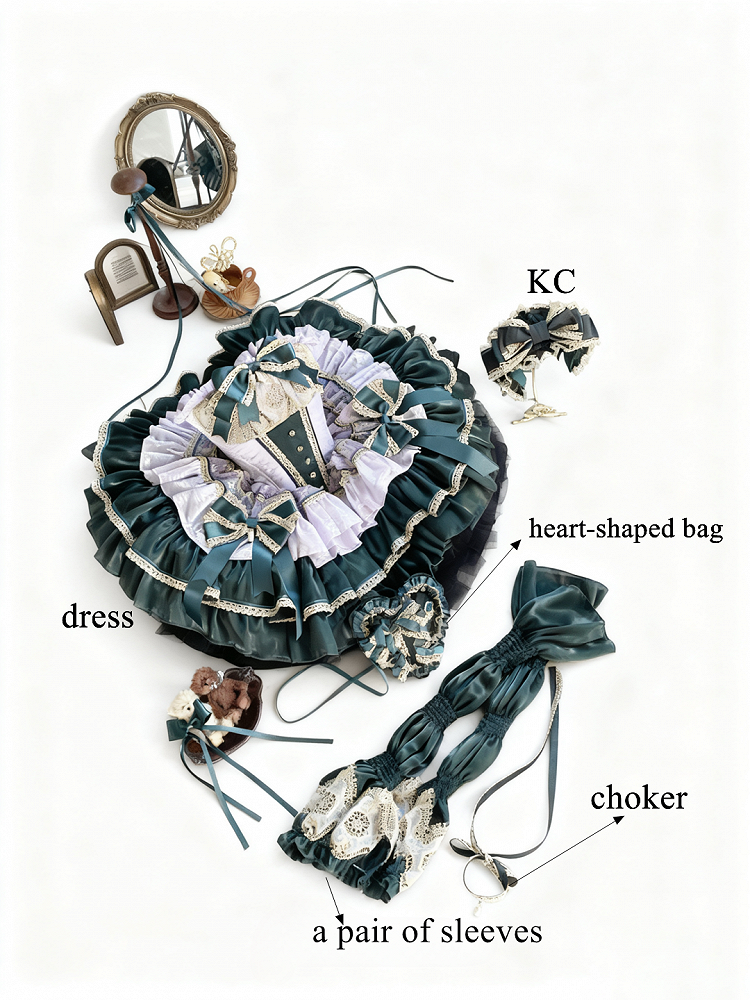 Layers Green Gold Light with Bow Accents and Purple Lace Dress Princess Trim Balletcore