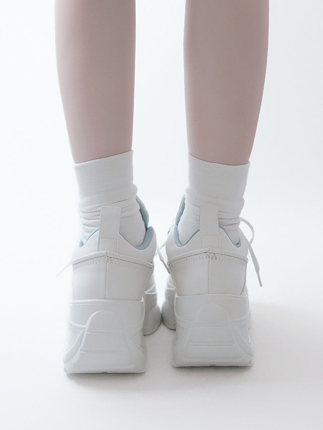 PU Leather with Classic Lacing System Matte White Platform Sneakers in Jirai Kei