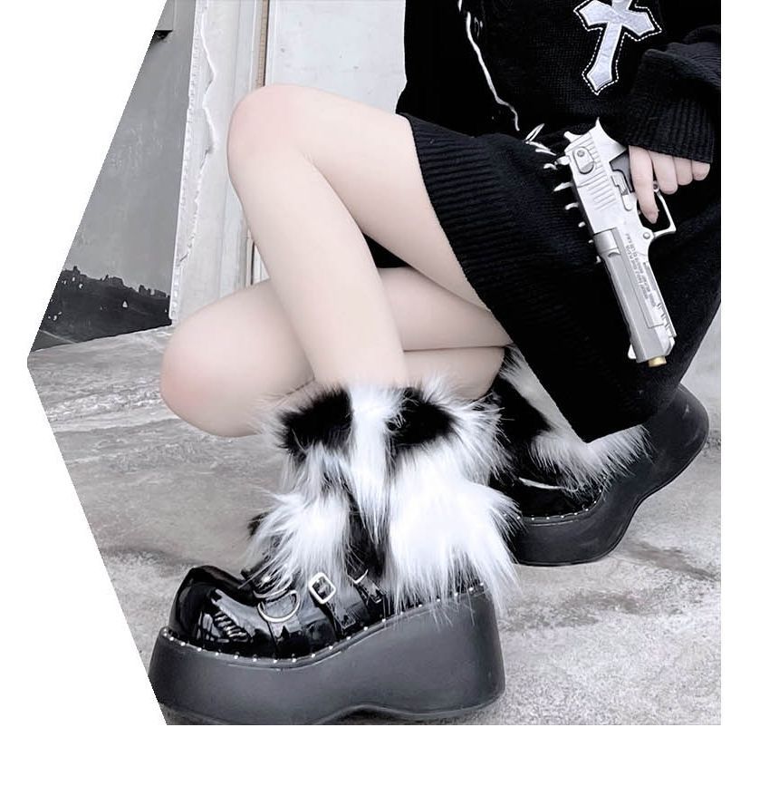 Ultra-Thin Leg Warmers Gray/Creamy White/Black Knitted Striped 35CM Vertical