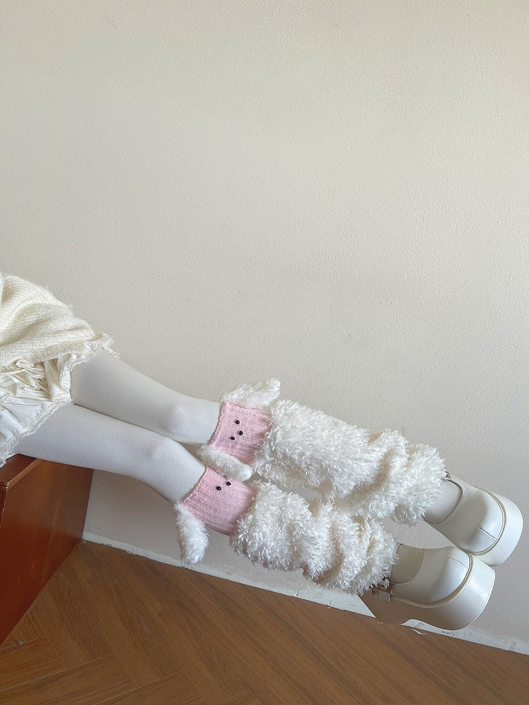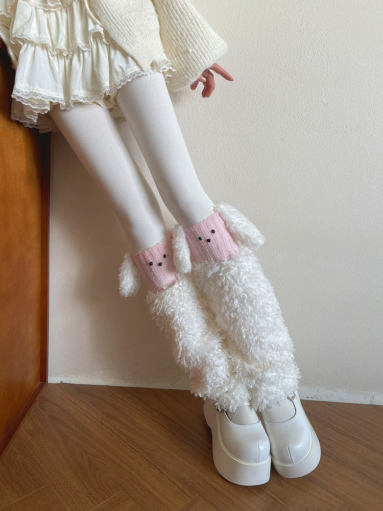 Leg Warmers Knit (Pink/White) Puppy-Ear 2-Color