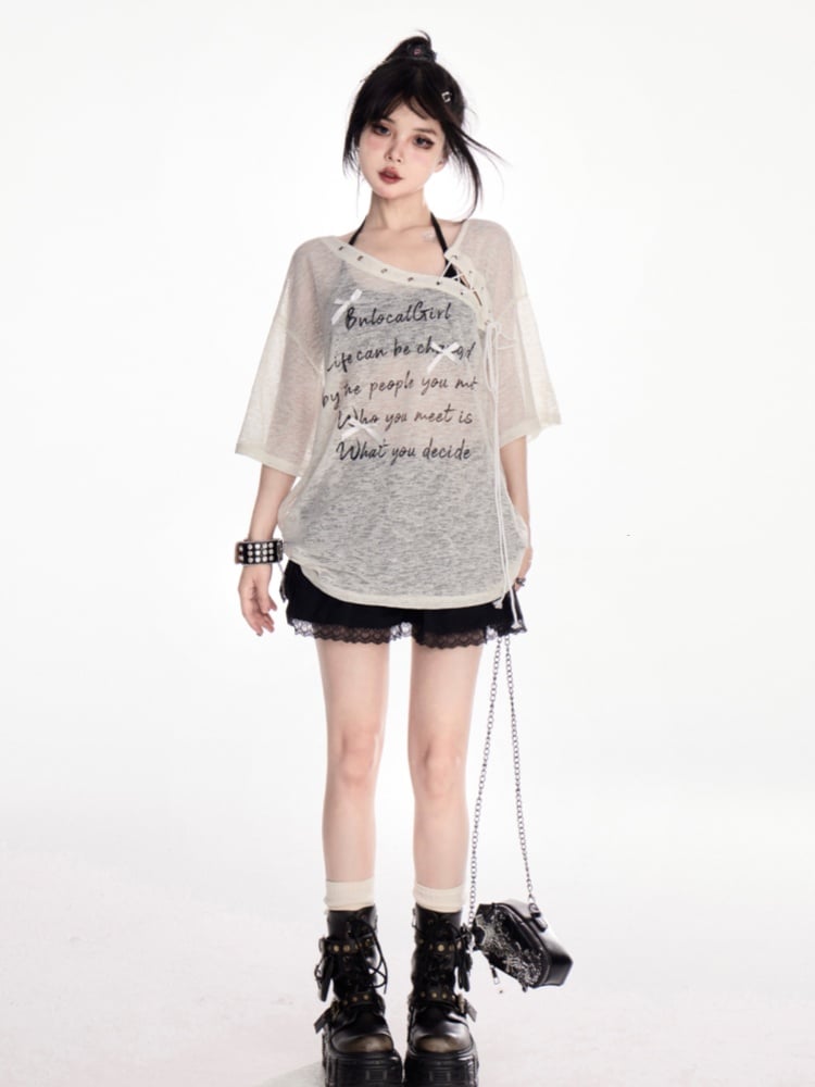 Leopard Pattern Buckle Straps Black Lace Trim Tiered Skirt