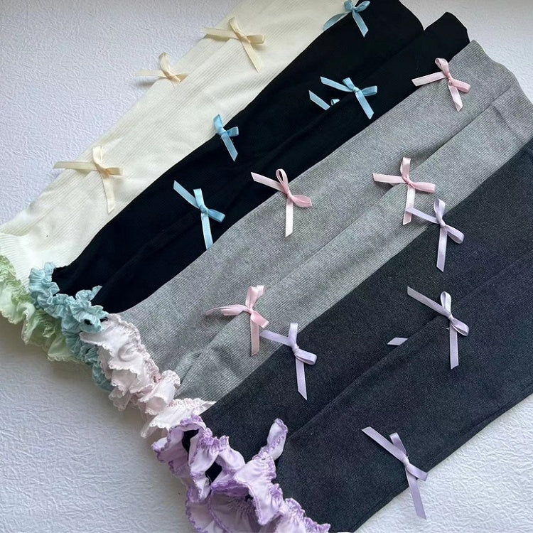 Light Grey/Black/White/Dark Grey Blokette Bowknot Ruffled Cuff Leg Warmers
