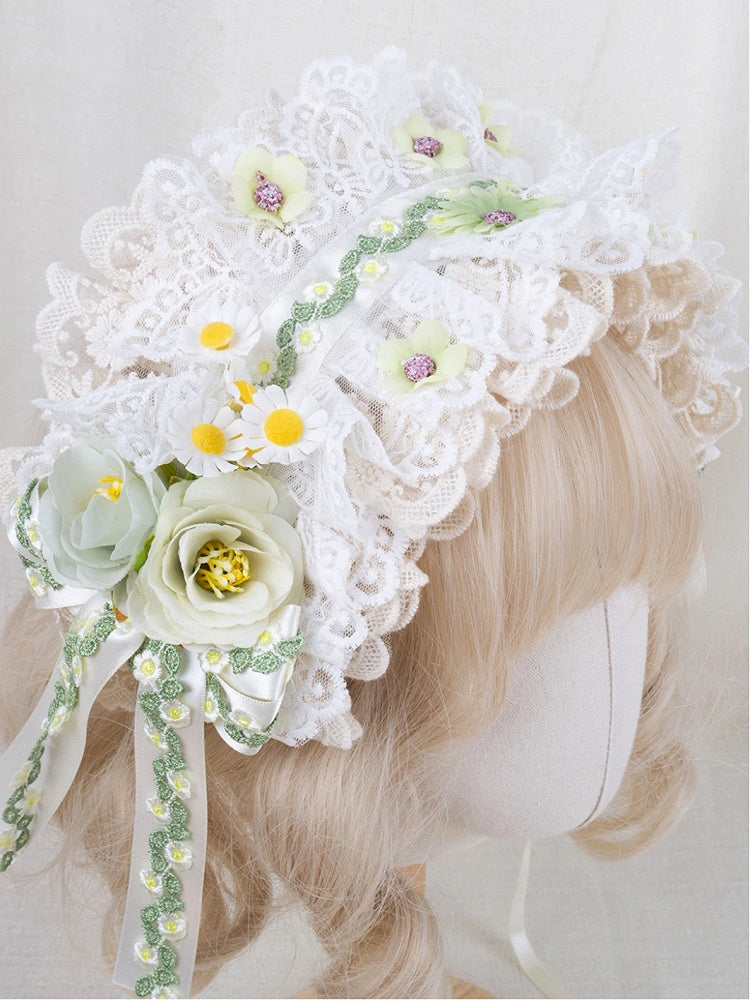 Light White Lace Embroidery Hairband Green Floral