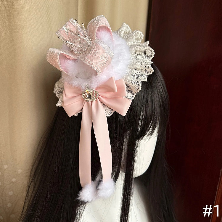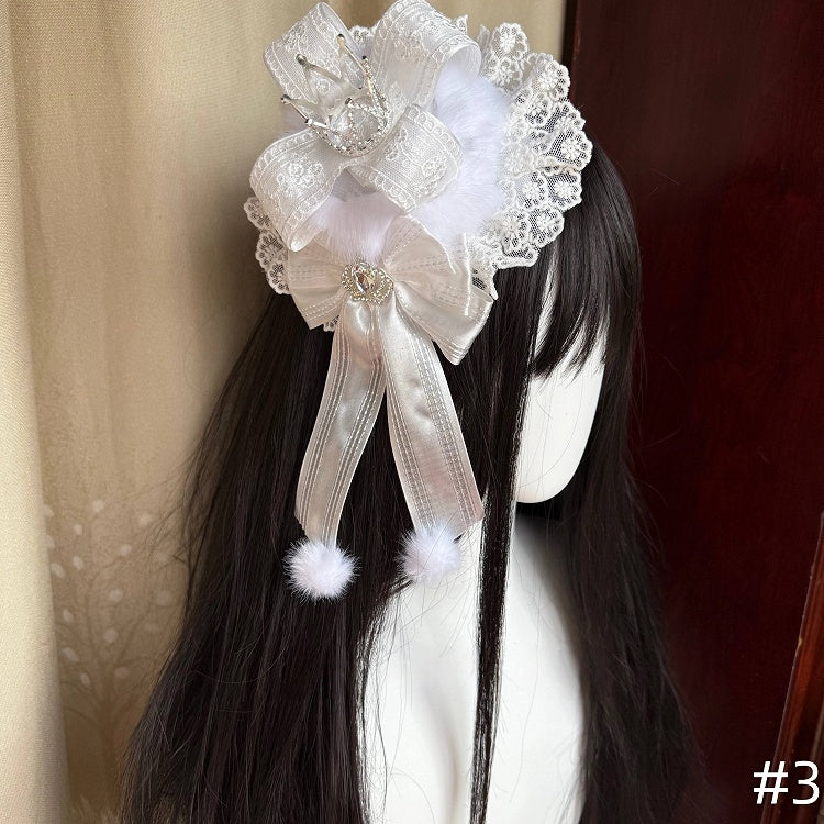 Hime Lolita Four-Color Mini Hat Set - Red, White, Light Blue & Pink with Lace, Bow & Crown Details