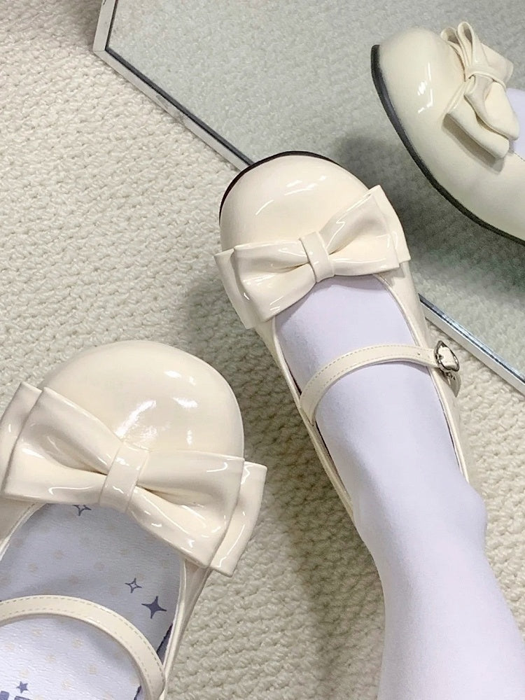 Yellow Sweet Tea Party Mid-heel Shoes – Sweet Lolita Mary Janes, Heart Strap & Bow Detail