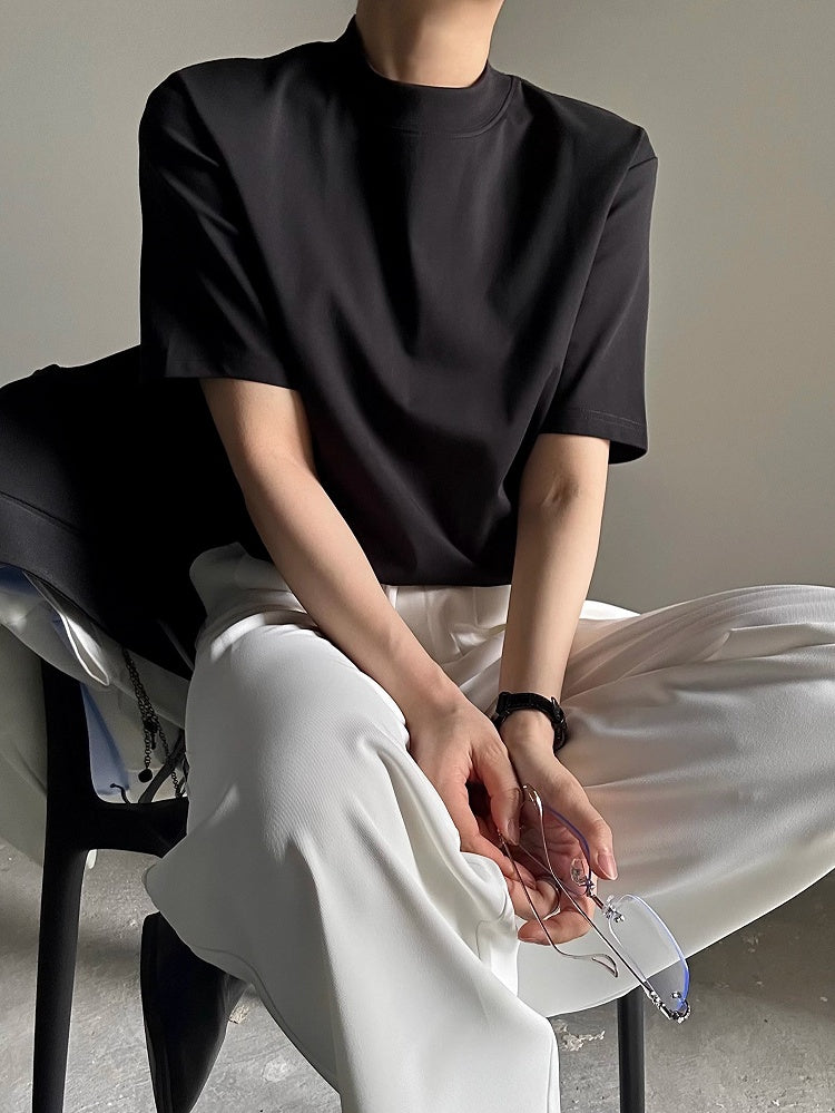 Ouji Lolita Black Unisex Short Sleeve Mock Neck T-shirt
