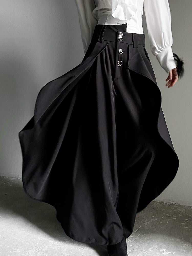 Lolita Ouji Skirt Waist Black Design with Asymmetrical Wide-Leg Pants