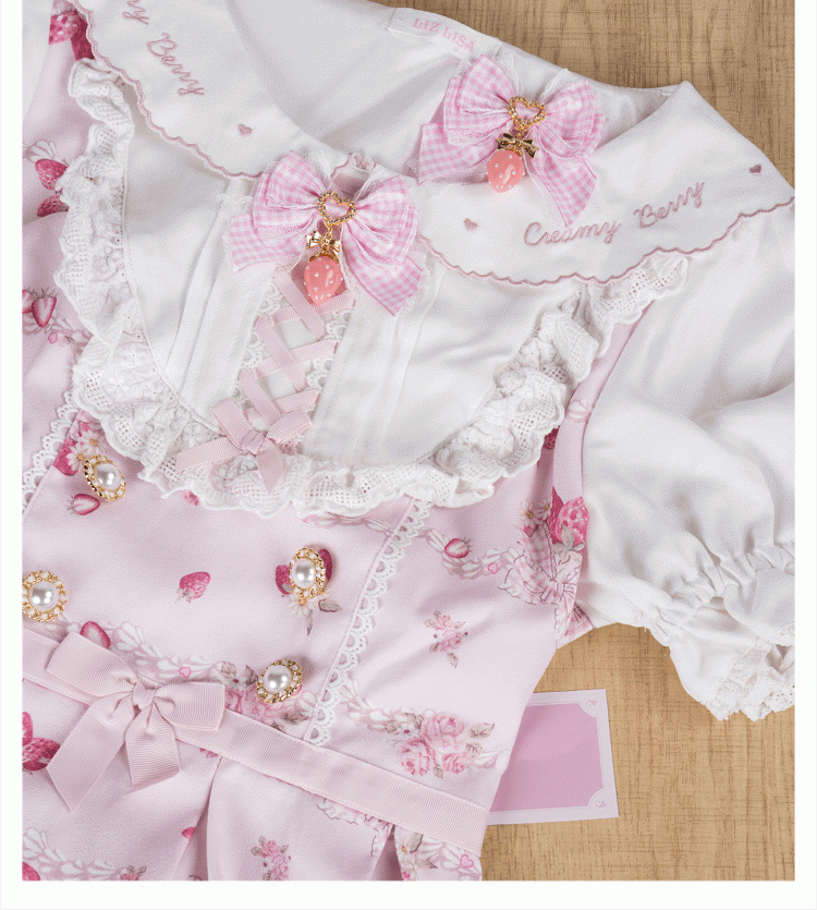 Pink and White Old School Lolita Fashion Dress Bowknot Detais Lolita JSK Set
