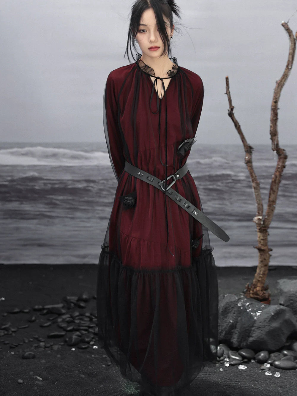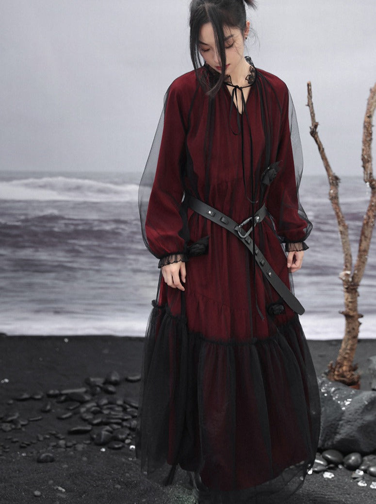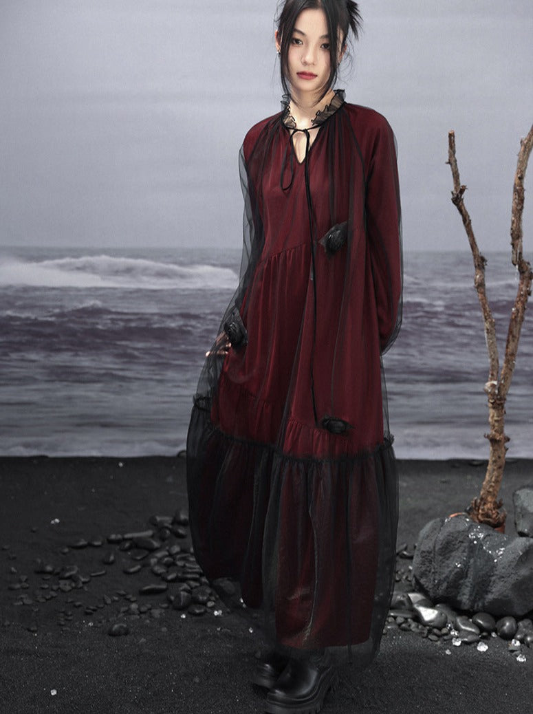 Loose See-through Shirt Dark Dress Mesh Contrast