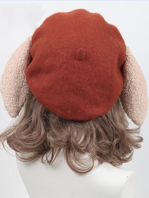 Lop-eared Lolita Bunny Beret Sweet Khaki/Red