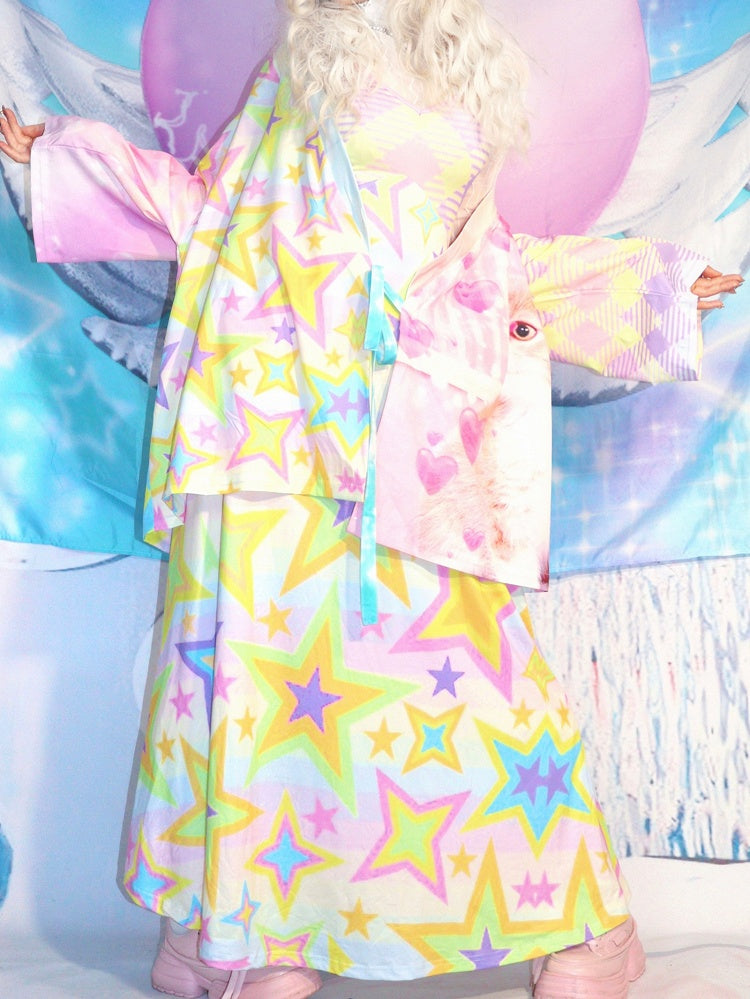 Macaroon Y2K Cami Dress with Star Prints and Striped Patterns