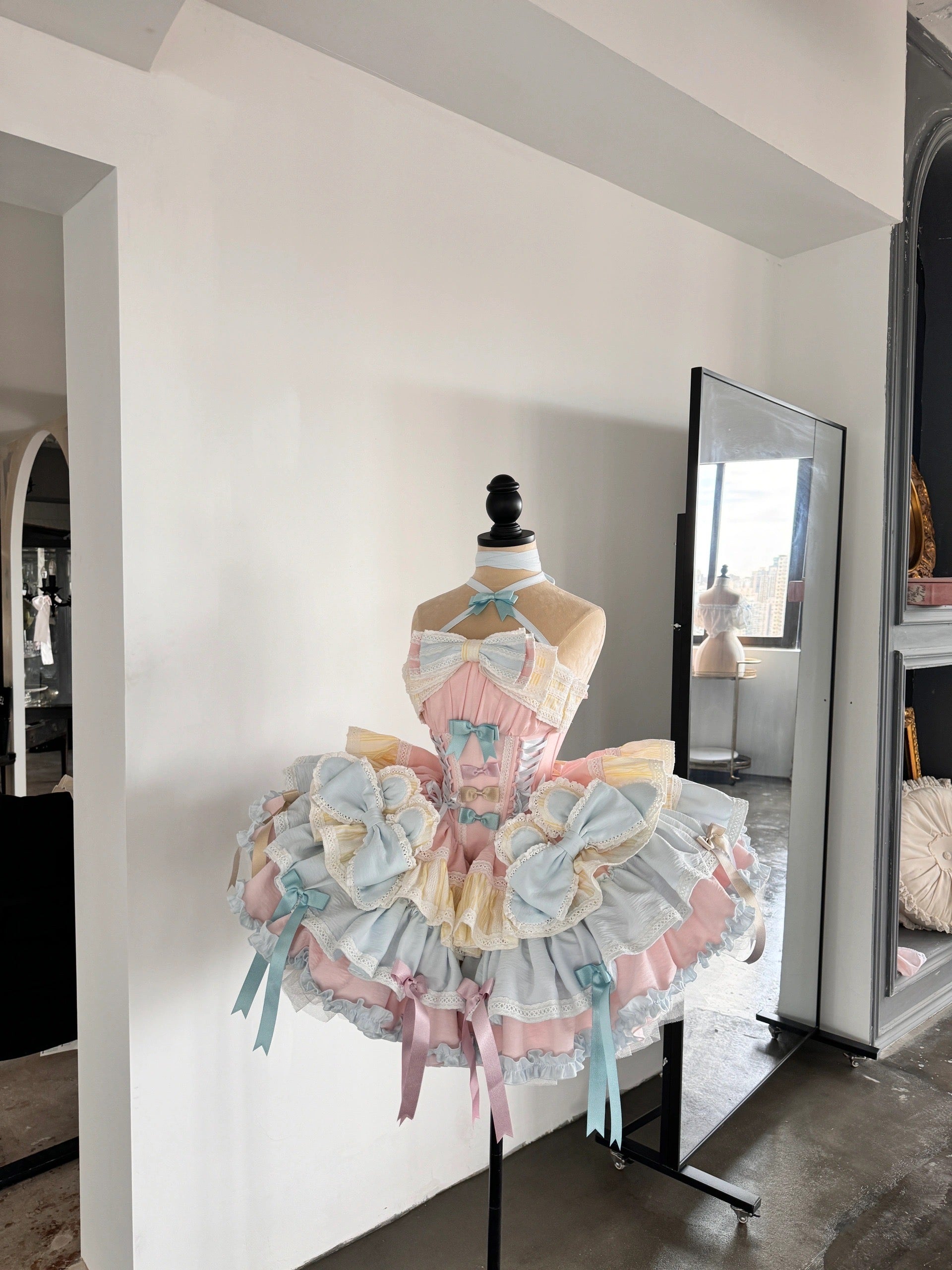 Pink and White Old School Lolita Fashion Dress Bowknot Detais Lolita JSK Set
