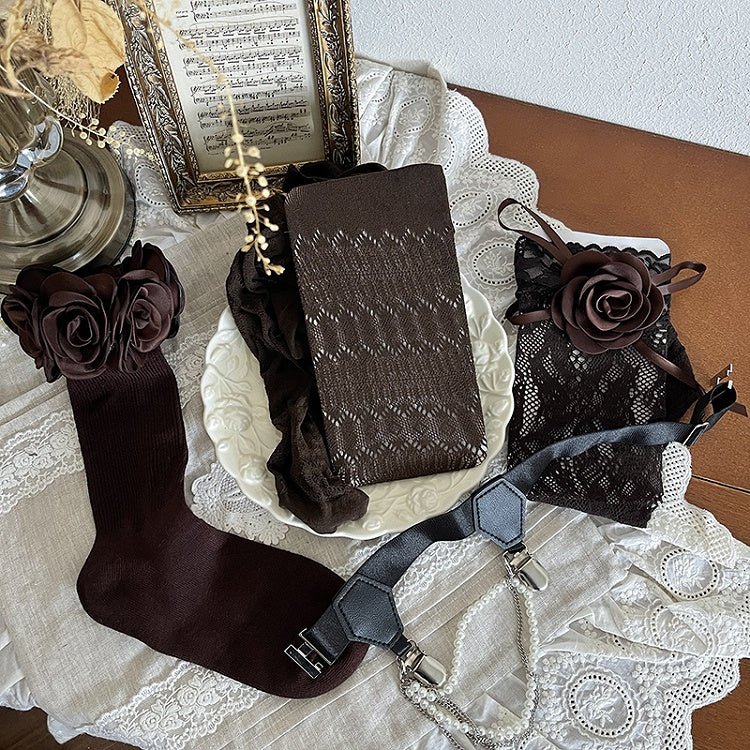 Maillard Socks Set - Leg Garter + Tights + Single Over Knee Stocking + Single Calf Sock