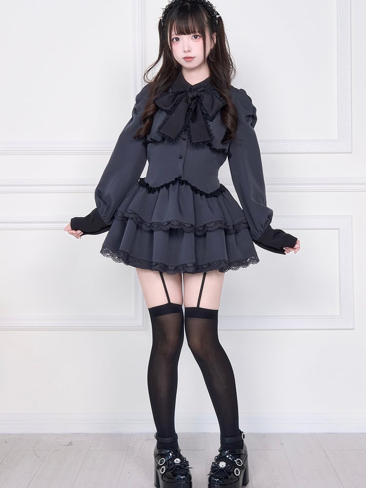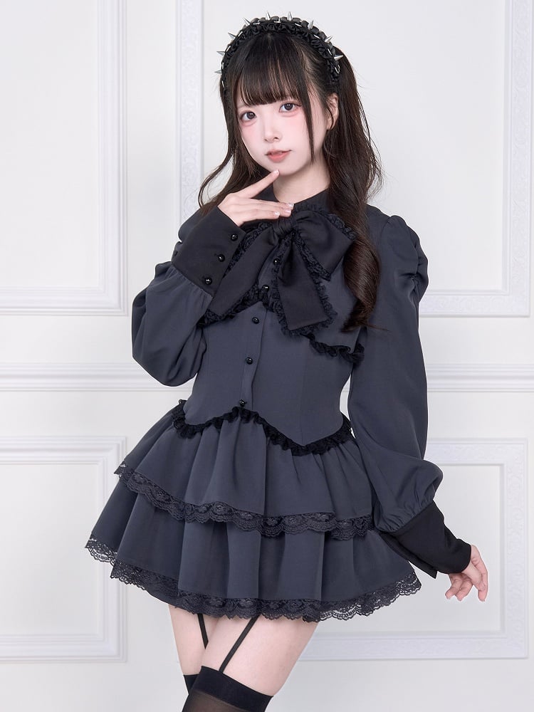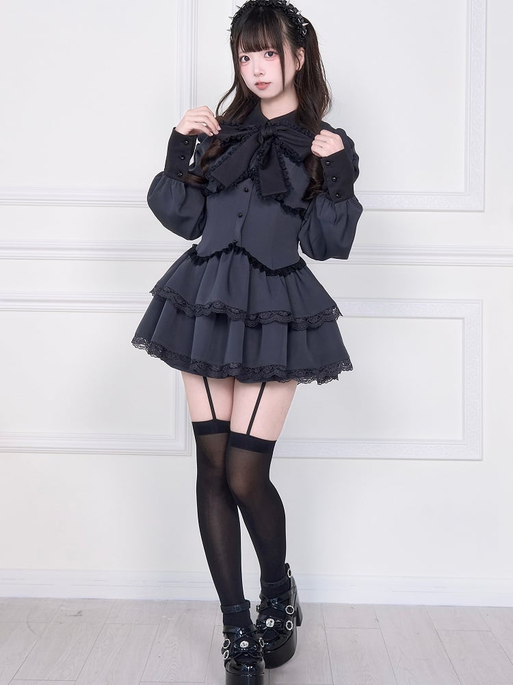 Matching with Shorts Double Sculpted Skirt Kei Jirai Dress Layered W-Corset Gray