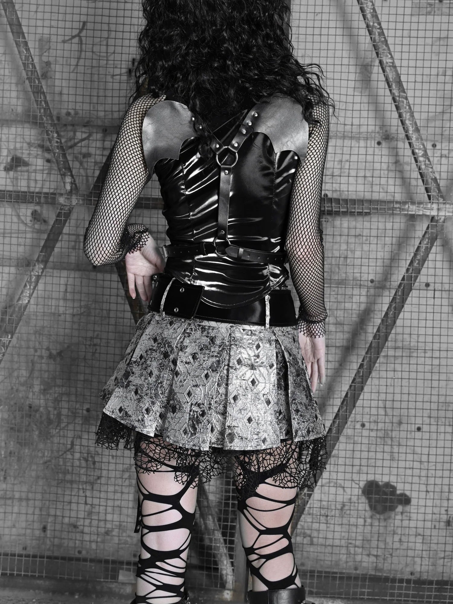 Mesh Top Punk Slim Gothic Wing PU Sheer Liquid