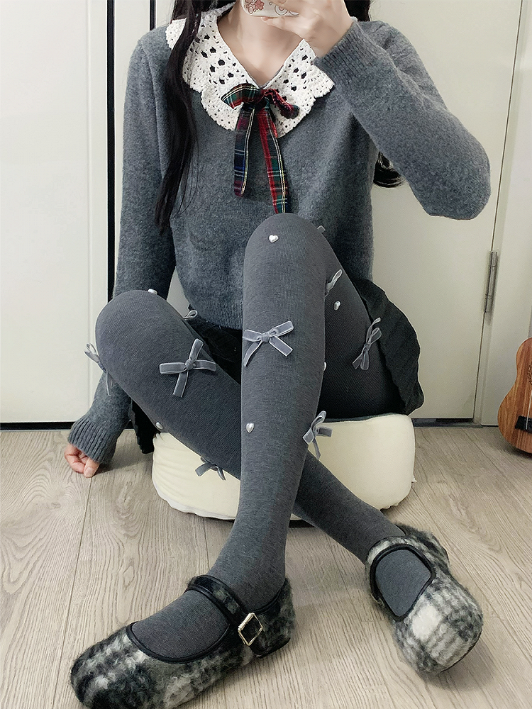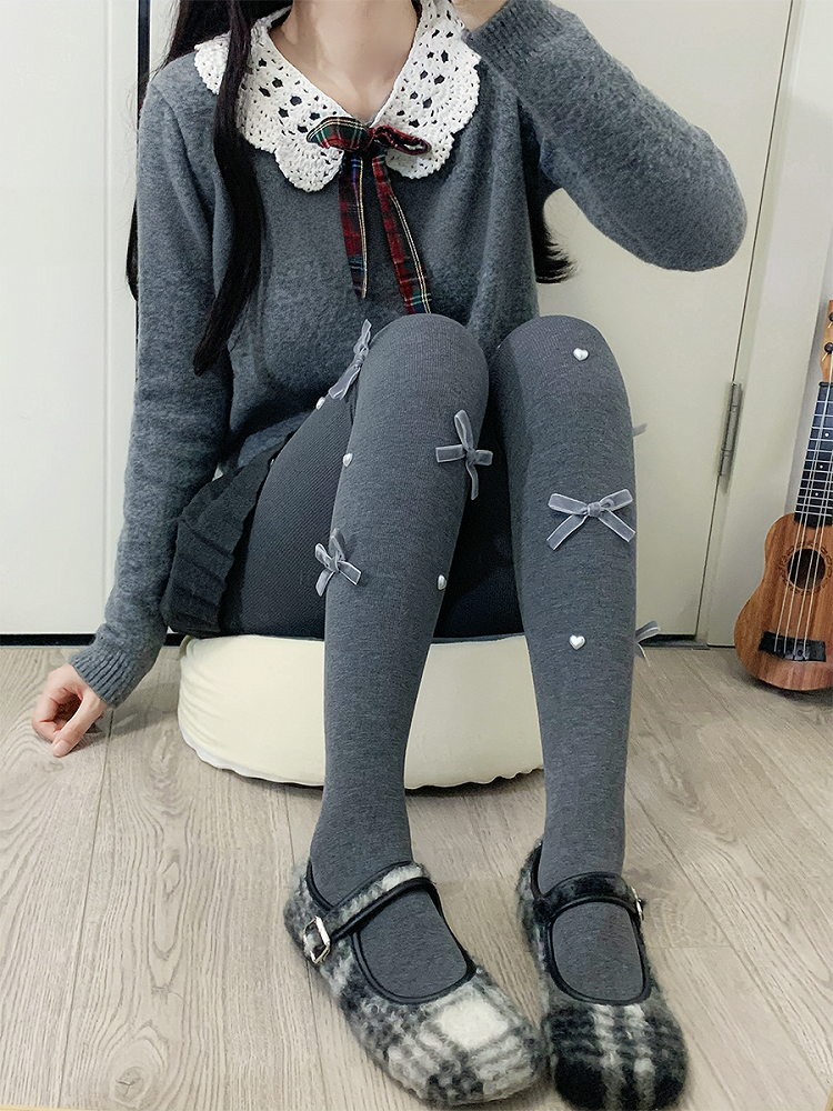 Milk White/Coffee/Gray Sweet Bowknot Heart Tights