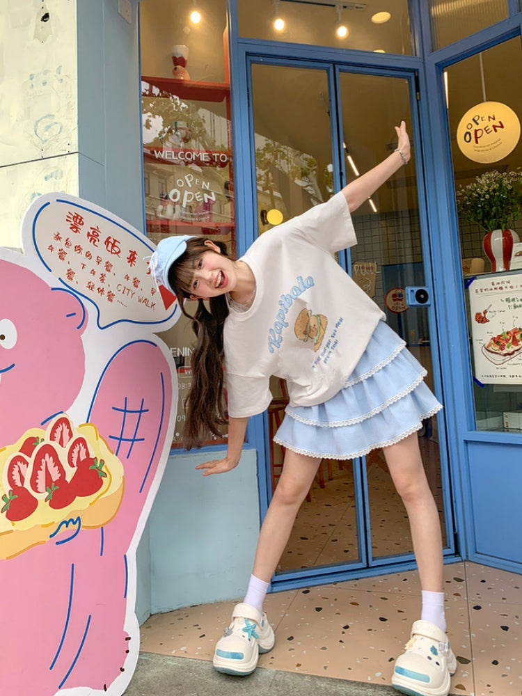 White Round Neck Capybara Burger Print T-Shirt Long Version