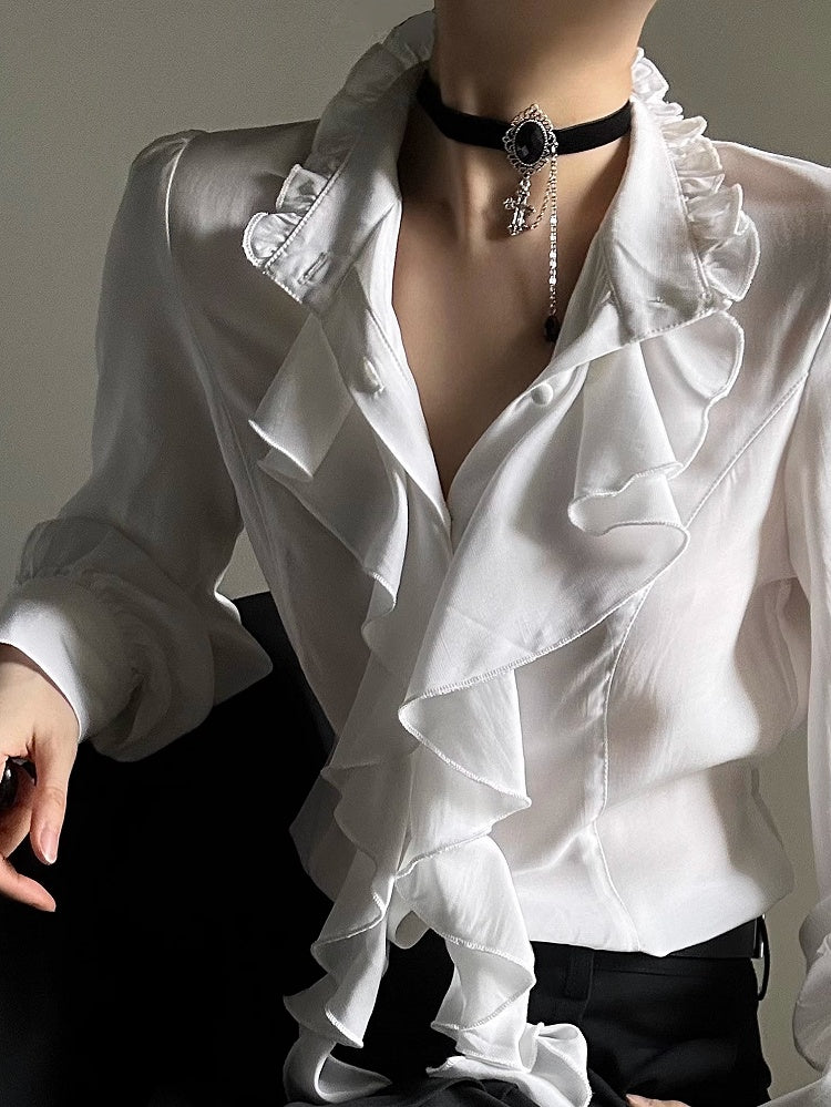 Ouji Lolita Elegant Vintage Obsidian Choker Necklace with Ornate Metalwork & Cross Charm