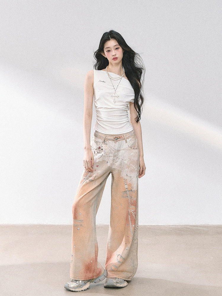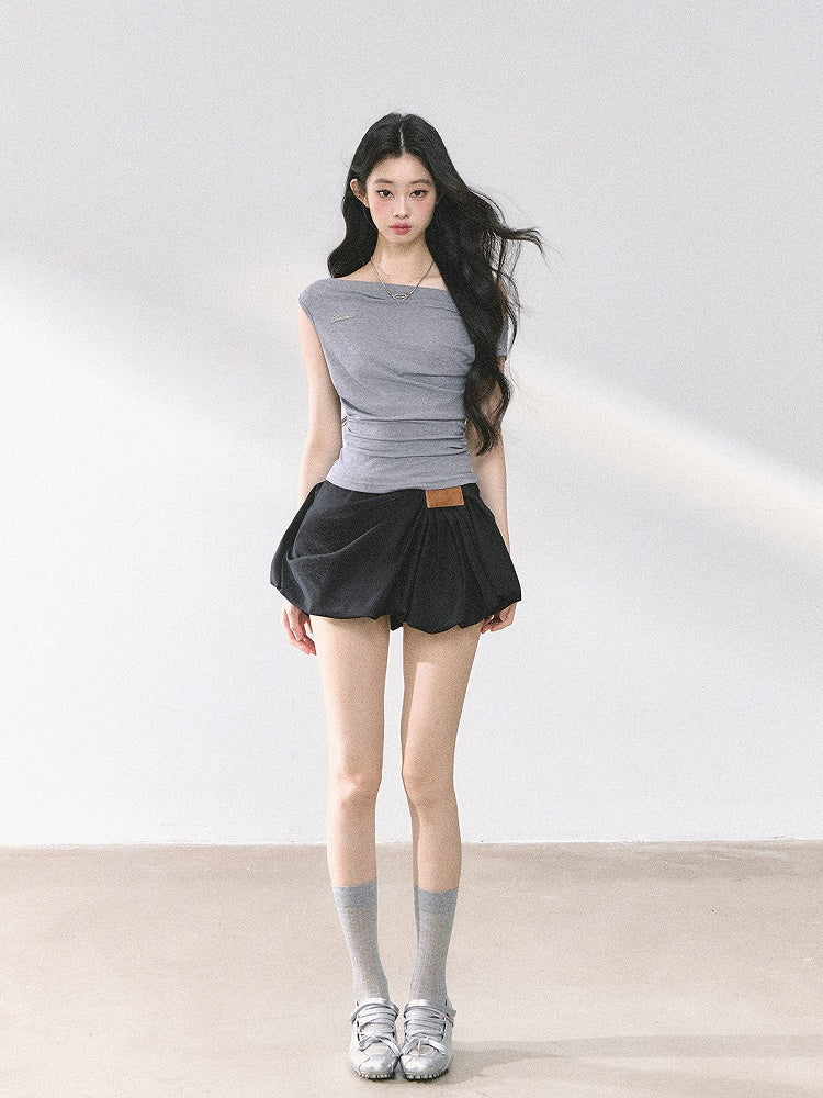 White/Gray/Navy Blue Asymmetrical Neckline T-shirt
