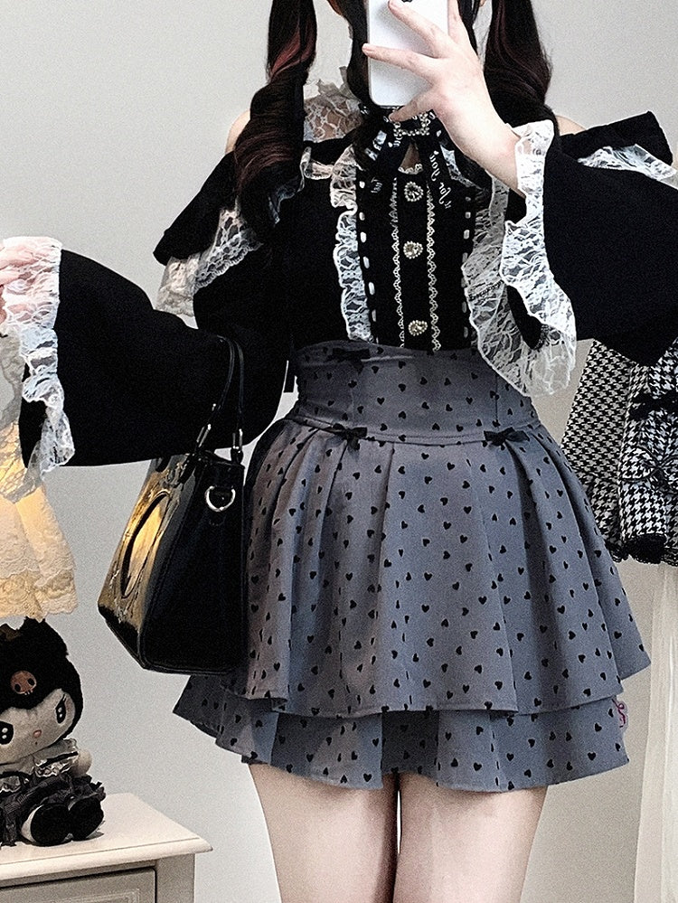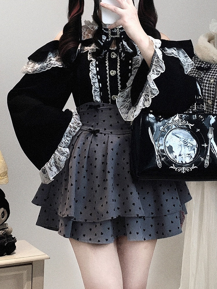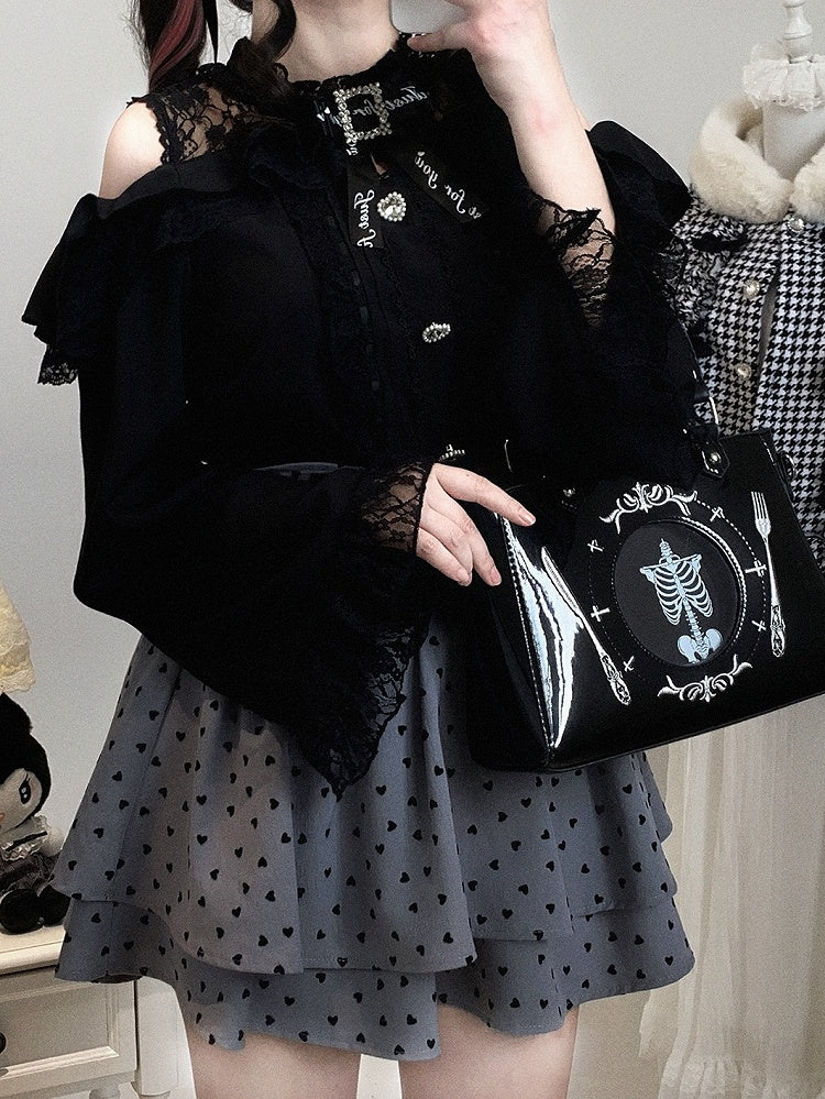 Neckline Illusion Shoulder with Open Blouse Jirai Baggy Kei