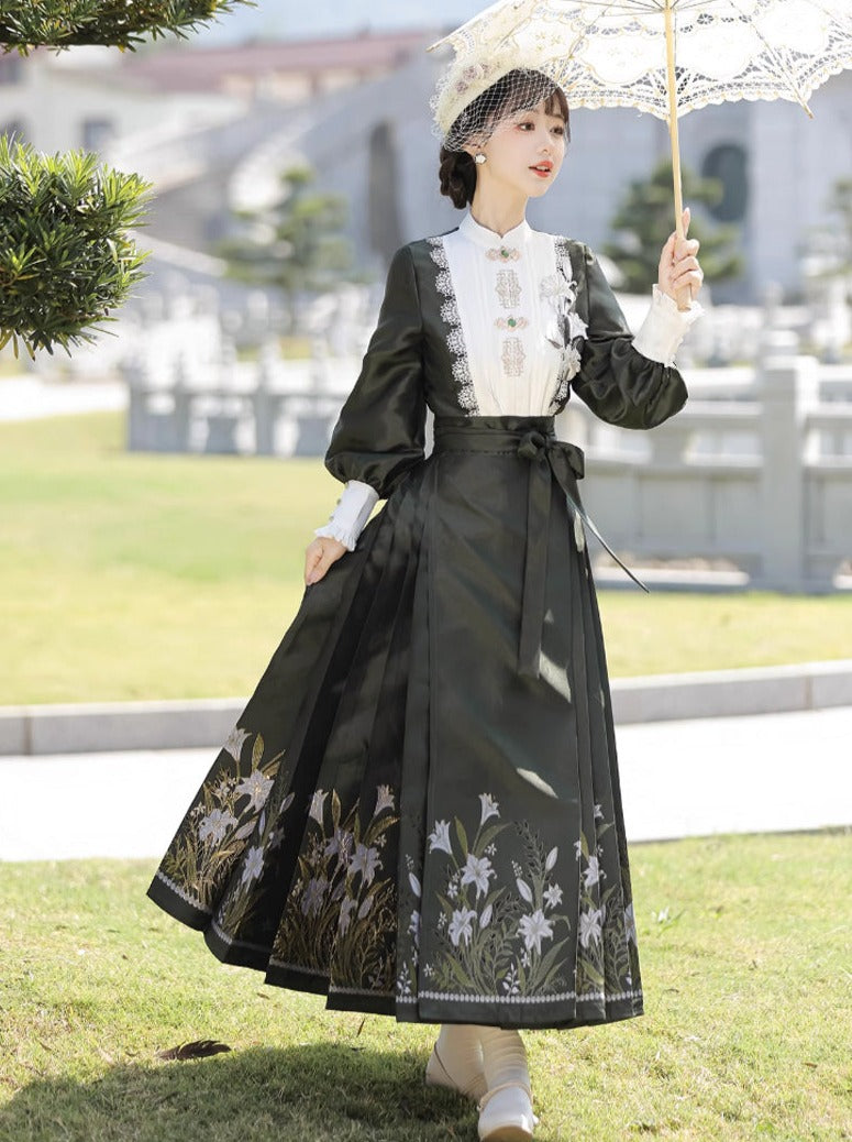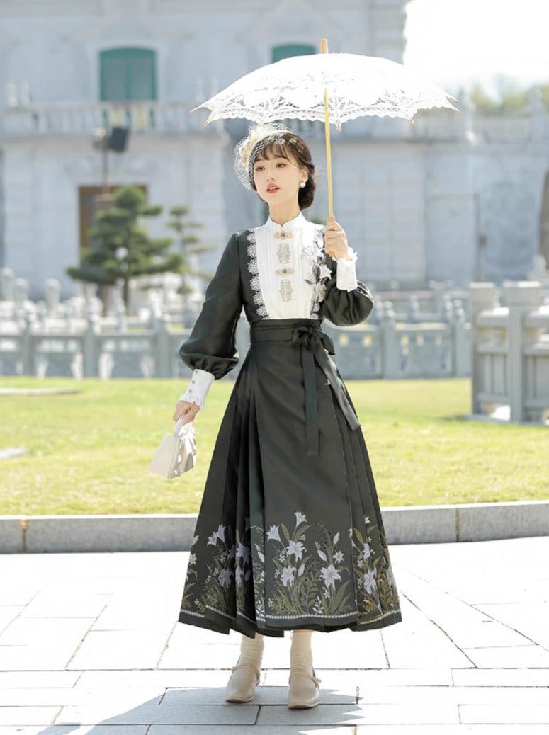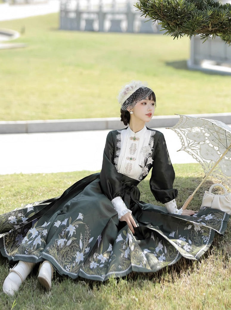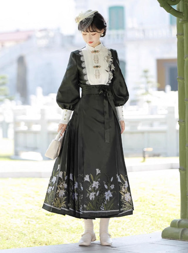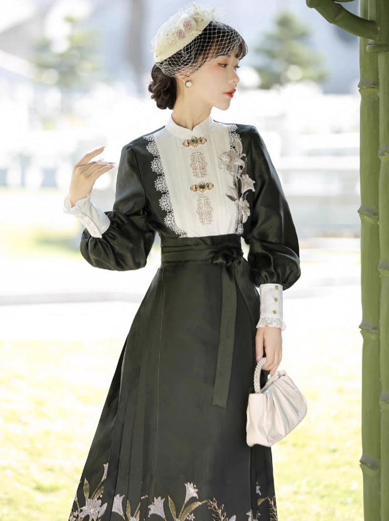 Black and White Old School Lolita Fashion Dress Bowknot Lolita JSK Set