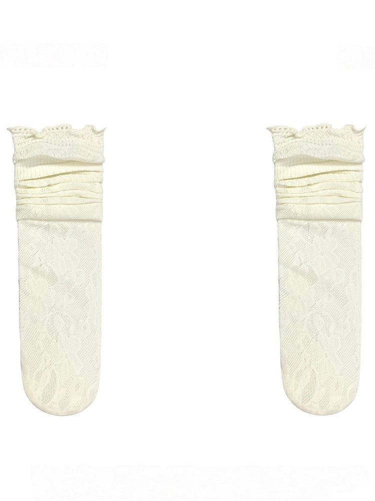 Off-White/Black Floral Pattern Cut-out Design Calf Socks