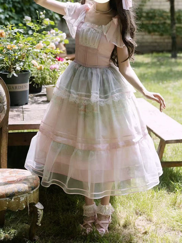 Pink and White Old School Lolita Fashion Dress Bowknot Detais Lolita JSK Set