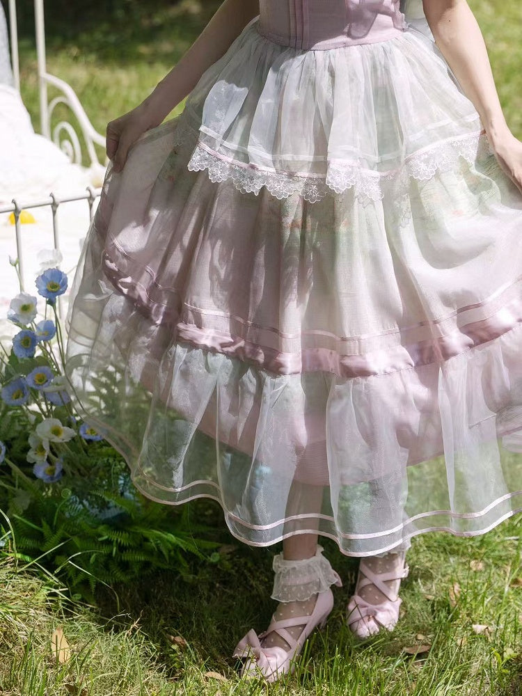 ● Oil Painting Print / Tiered Skirt / With Overlay