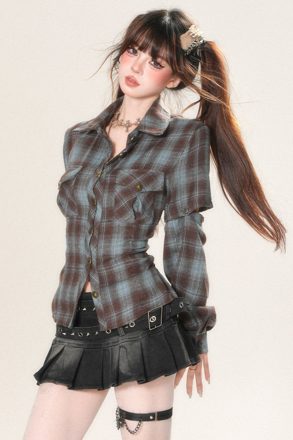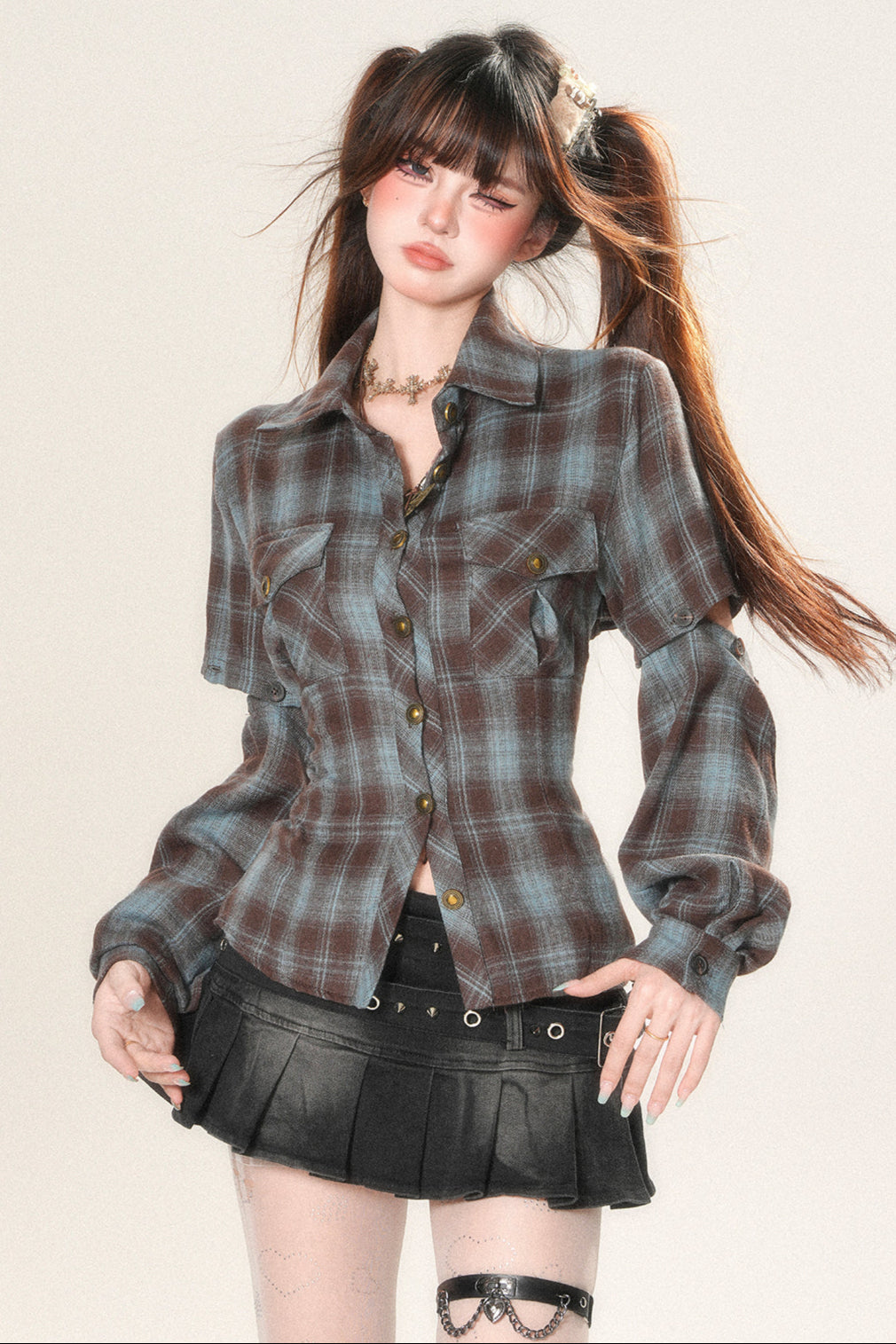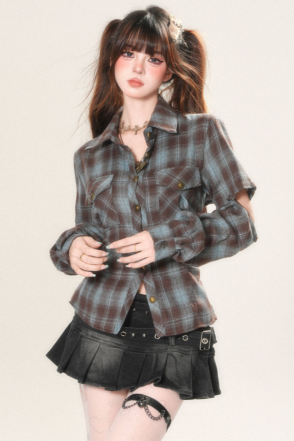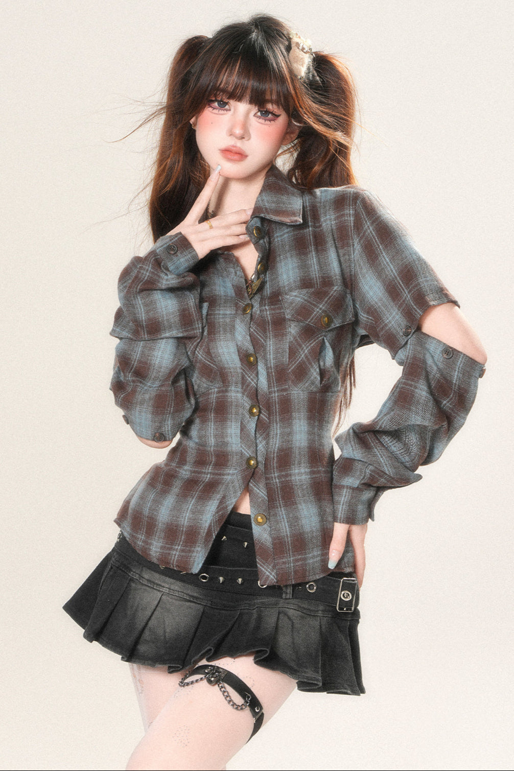 ❤Bag open design check shirt❤