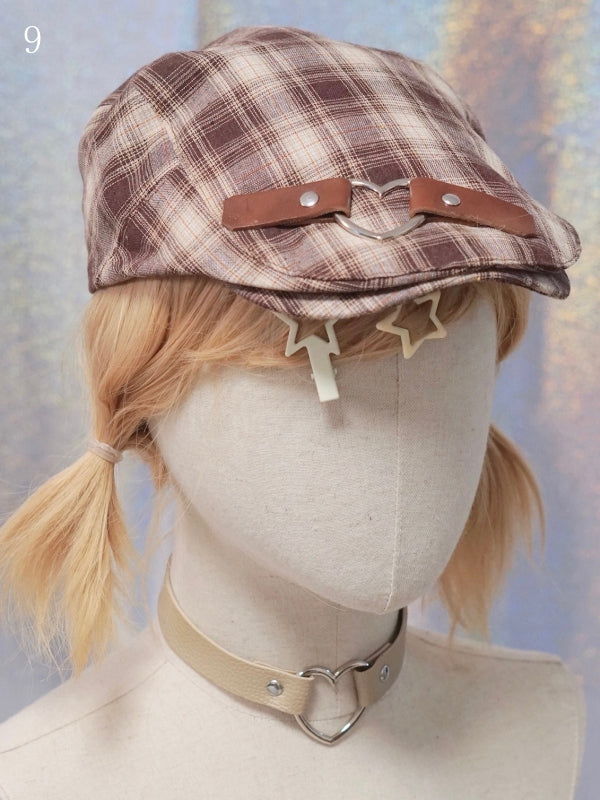 Options Applique Hat Beret Button/Star/Dog Y2K 17