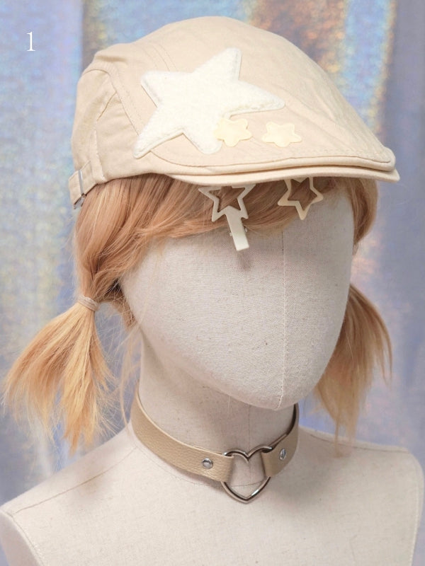 17 Options Button/Star/Dog Applique Y2K Beret Hat