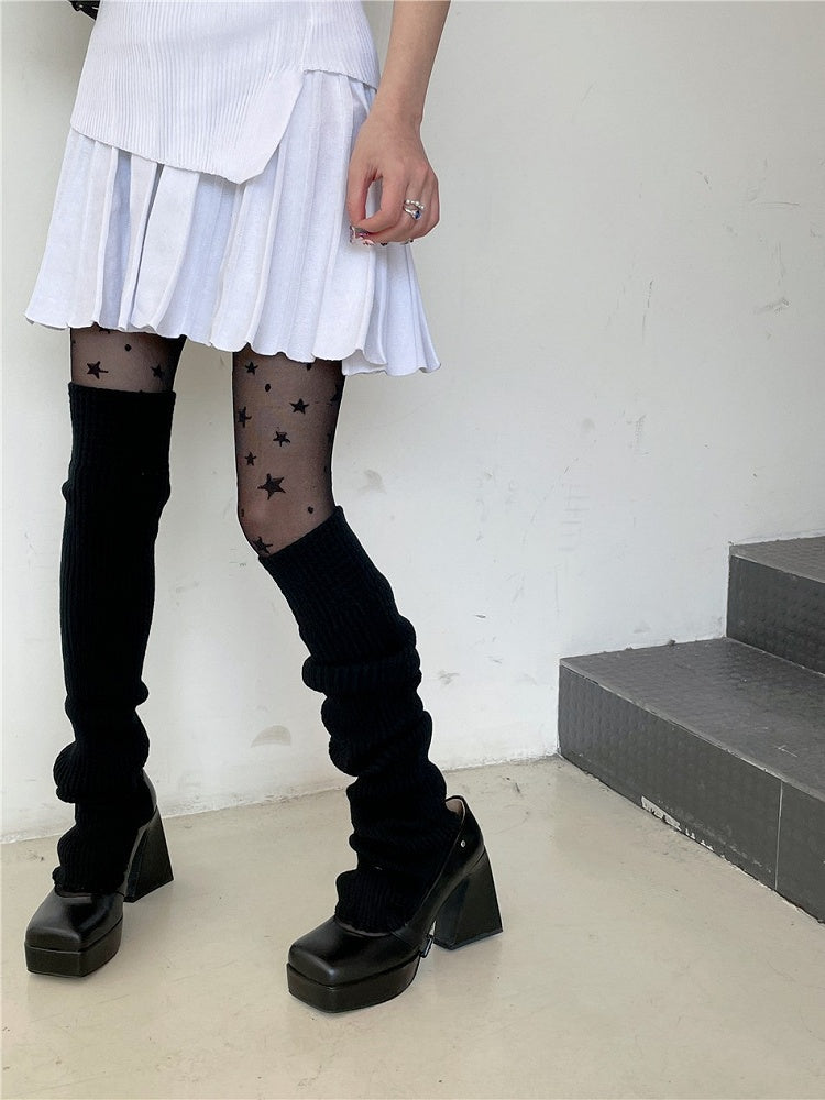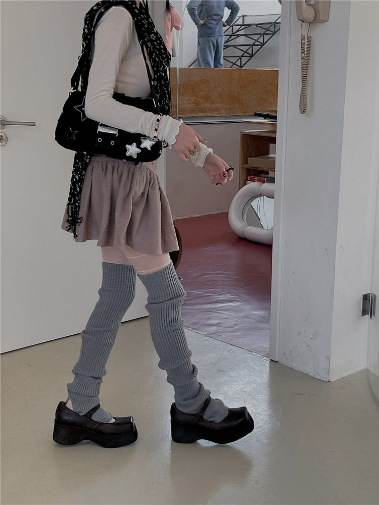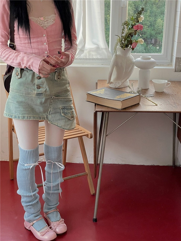 7 Color Options 75CM Knitted Leg Warmers With Detachable Ribbon Bow