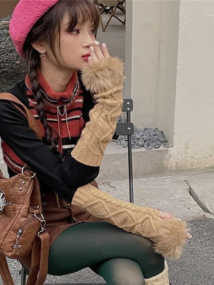 6 Color Options Plush Cuffs Fingerless Long Knit Gloves
