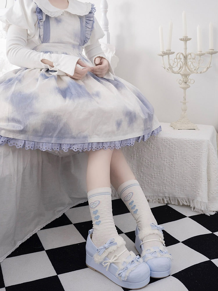 Blue and White Old School Lolita Fashion Dress Bowknot Detais JSK Set