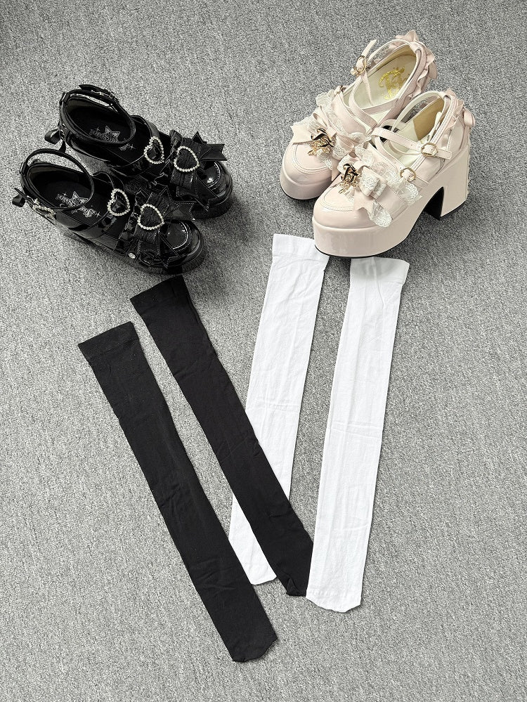 Black/White Jirai Kei Over-knee Stockings with Ribbed Trim