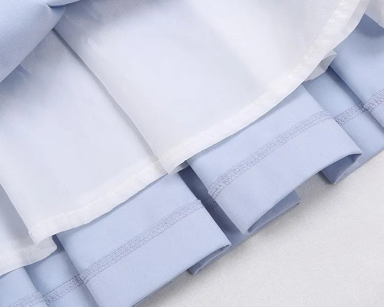 Little Tiger Embroidery Peter Pan Collar Light Blue Dress