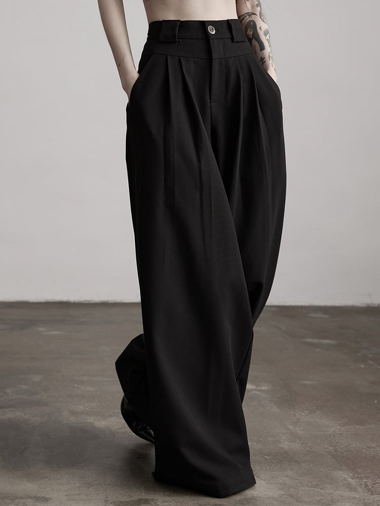 ● Button Closure and Zip Fly / Slant Front Pockets / Wide-leg Cut