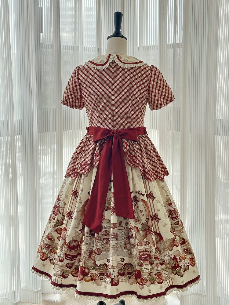 Red Plaid Pattern and Tinned Tomatoes Print Country Lolita Short Sleeve Dress