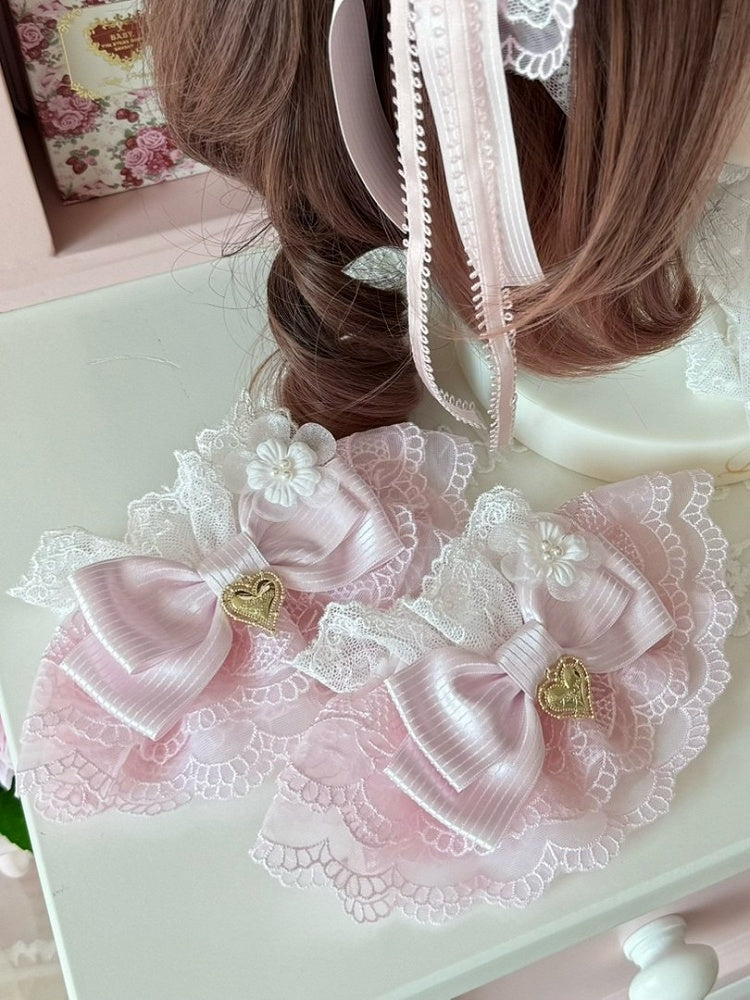 Pink/Pink&Blue Floral Design Heart Decorated Striped Pattern Bowknot Wrist Cuffs