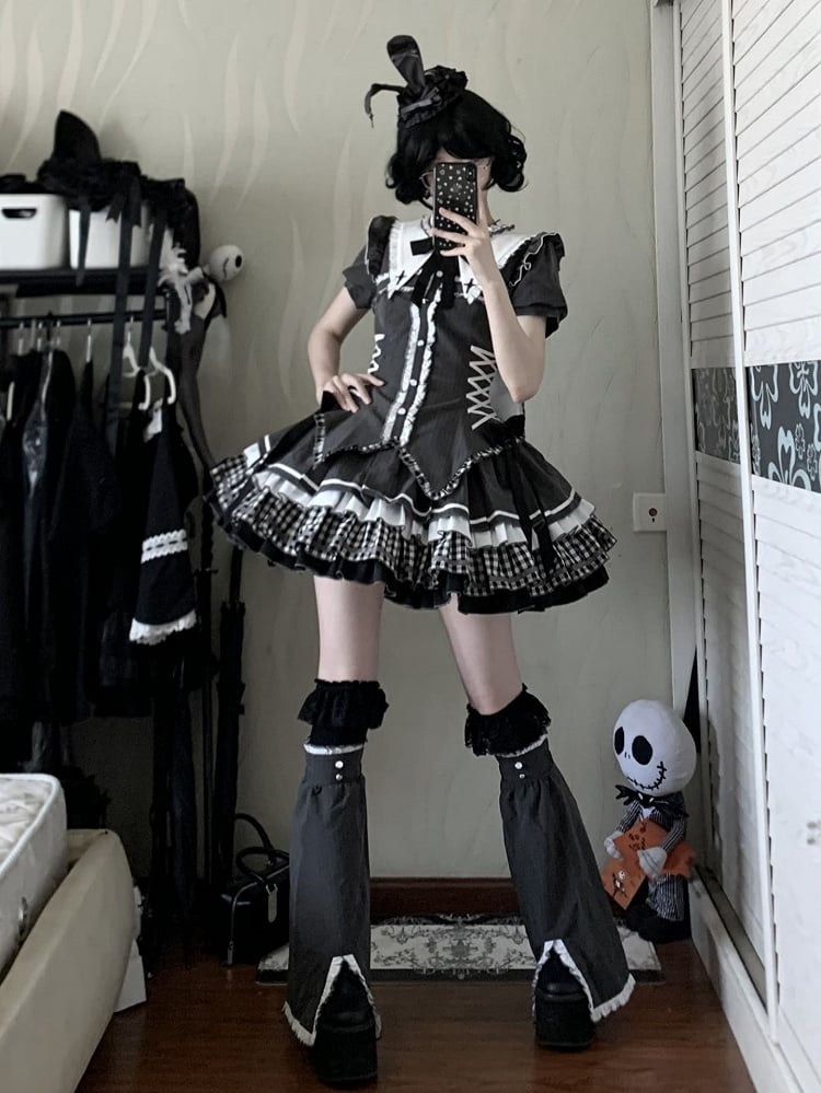 Black and White Old School Lolita Fashion Dress Bowknot Lolita JSK Set
