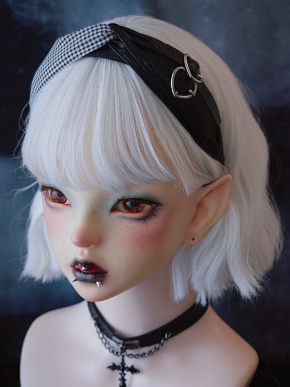 Black Gothic Plaid Pattern With Double Heart Buckles Decorated KC